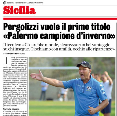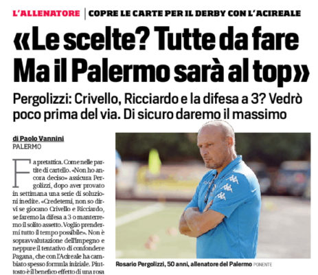 L'edizione odierna della "Gazzetta dello Sport" riporta le dichiarazioni di Rosario Pergolizzi, allenatore del Palermo: «Sono convinto che la partita...
