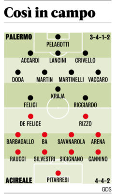 L'edizione odierna della "Gazzetta dello Sport" riporta le probabili formazioni della sfida tra Palermo e Acireale. In foto, i ventidue...