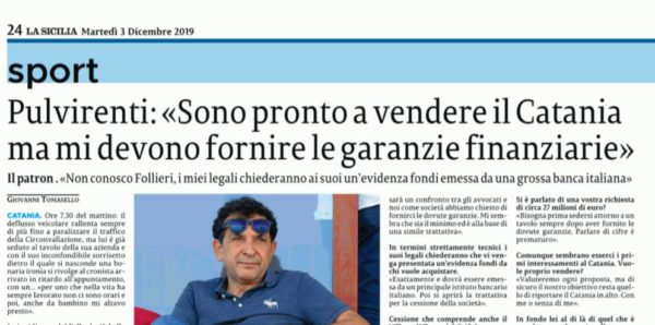 Pulvirenti: «Sono pronto a vendere il Catania, ma mi devono fornire le dovute garanzie»