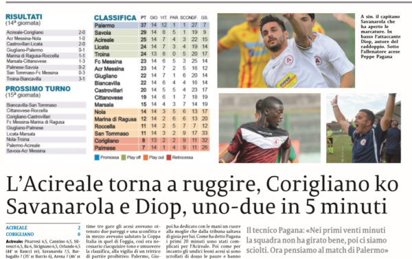 L'Acireale dopo un mese è riuscito a ritrovare la vittoria, 2- 0 contro il Corigliano per la squadra di Pagana...