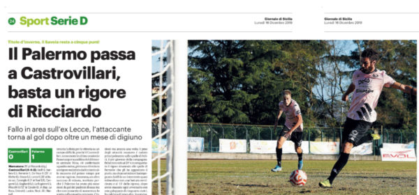 L'edizione odierna del "Giornale di Sicilia" riporta le dichiarazioni di Giovanni Ricciardo, attaccante del Palermo: «Desidero dedicare questa vittoria a me...