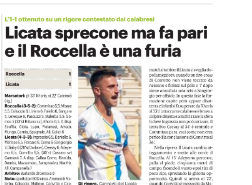 L'edizione odierna del "Giornale di Sicilia" si sofferma sul pareggio tra Roccella e Licata. Un Licata dai due volti, bruttino e...