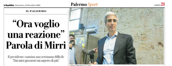 L'edizione odierna de "La Repubblica" si sofferma sulle dichiarazioni di Dario Mirri, presidente del Palermo: «Tutte le trasferte sono state complicate...