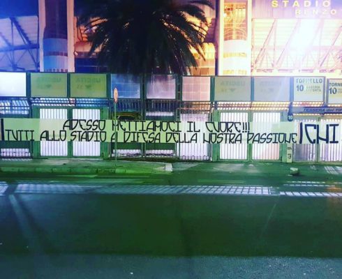 Nella notte la Curva Nord Inferiore ha appeno uno striscione all'esterno del "Renzo Barbera", per richiamare i tifosi allo stadio....