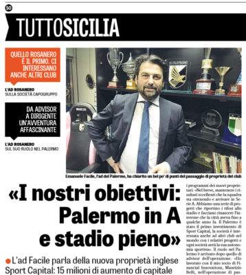 L'edizione odierna de "La Gazzetta dello Sport" ha riportato le dichiarazioni rilasciate da Emanuele Facile, nuovo ad del Palermo, attraverso...