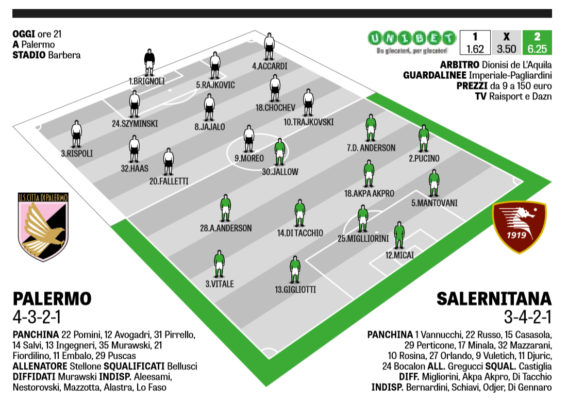 Questa sera, dopo la sosta natalizia, ricomincia il campionato di serie B e in campo ci saranno Palermo e Salernitana....