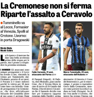 L'edizione odierna de "La Gazzetta dello Sport" riporta tutti i movimenti più rilevanti di calciomercato che riguardano la serie B:...