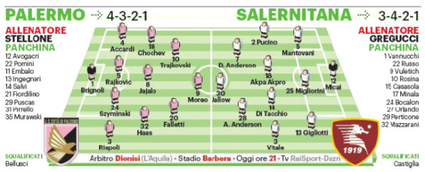 L'edizione odierna de "Il Giornale di Sicilia" ha analizzato le probabili formazioni di Palermo-Salernitana. Ecco in alto le potenziali scelte dei due...