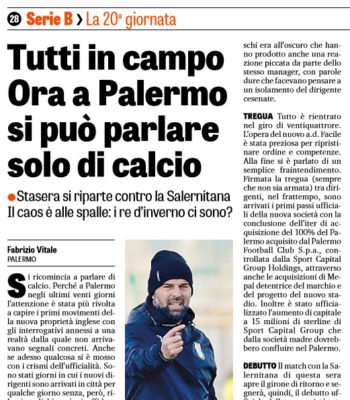 "Si torna a parlare di calcio. Perché a Palermo negli ultimi venti giorni l’attenzione è stata più rivolta a capire...