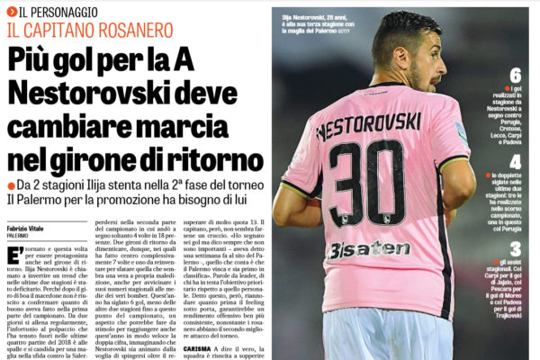 L'edizione odierna della "Gazzetta dello Sport", parla del rientro del capitano del Palermo Ilija Nestorovski in vista del match di...