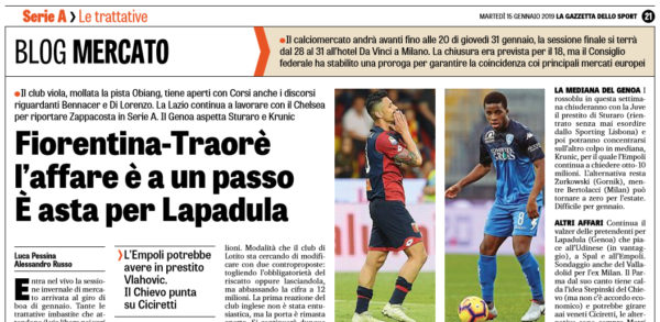 L'edizione odierna della "Gazzetta dello Sport", fa il punto sul mercato di serie A. Ecco quanto si legge: "Entra nel...