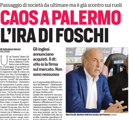 L'edizione odierna del "Giornale di Sicilia", parla del caos generatosi ieri tra la proprietà inglese del Palermo ed il direttore...
