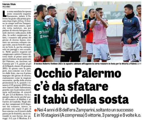 L'edizione odierna della "Gazzetta dello Sport", parla di statistiche relative alle prime gare disputate dal Palermo alla ripersa del campionato....
