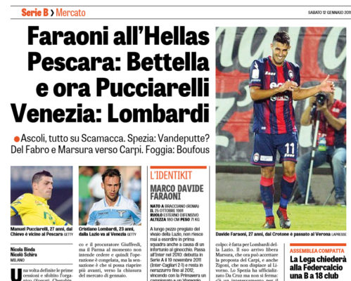 L'edizione odierna della "Gazzetta dello Sport", fa il punto sul mercato di serie B. Ecco quanto si legge: "Una volta...