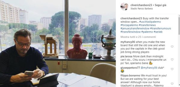 Sotto al post dove si vede Dean Holdsworth a lavoro, pubblicato ieri dal presidente rosanero Clive Richardson, non sono mancati...