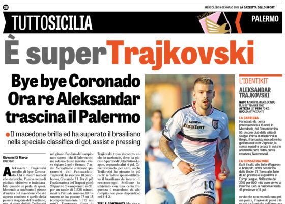 L'edizione odierna de "La Gazzetta dello Sport" si sofferma sul rendimento di Trajkovski, che sta riuscendo a non far rimpiangere...