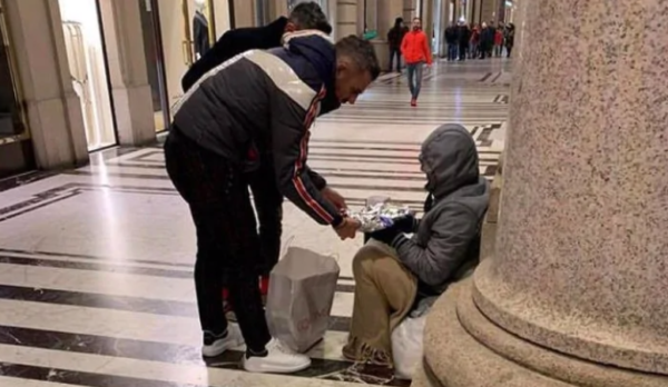 L’ex rosa Sorrentino dal cuore d’oro: cibo ai bisognosi nella sera di Natale (FOTO)