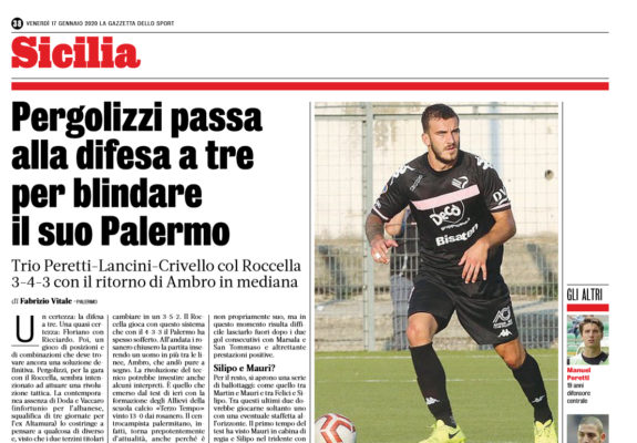 L'edizione odierna della "Gazzetta dello Sport" parla delle strategie del tecnico del Palermo Pergolizzi in vista della sfida contro il...