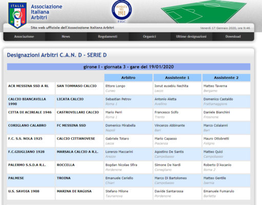 Palermo-Roccella: arbitra il signor Sfira