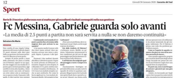 Il tecnico dell'FC Messina, Gabriele, prossimo avversario del Palermo, ha parlato alla "Gazzetta del Sud". Ecco le sue parole: «Media...