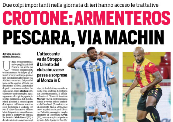 L'edizione odierna del "Corriere dello Sport" riporta le trattative del giorno in Serie B. Ecco quanto riportato: "Ultime ore di...
