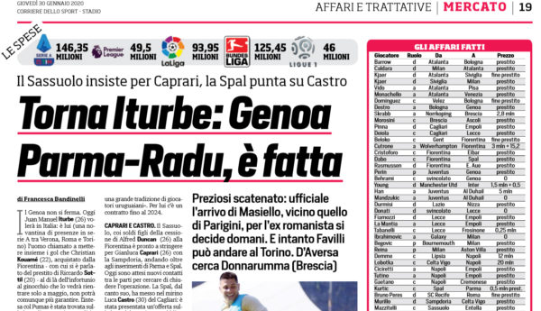 L'edizione odierna del "Corriere dello Sport" fa il punto anche per quanto riguarda il mercato di serie A. Il Genoa...