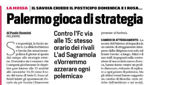 L'edizione odierna del "Corriere dello Sport" si sofferma sulla sfida a distanza tra Palermo e Savoia. Domenica sia i rosanero...