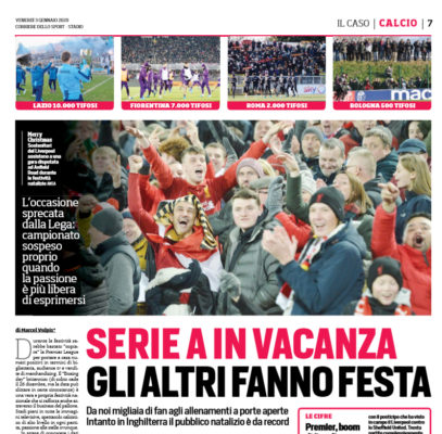 L'edizione odierna del "Corriere dello Sport" si sofferma sulla pausa della Serie A, a differenza della Premier League. Durante le festività...