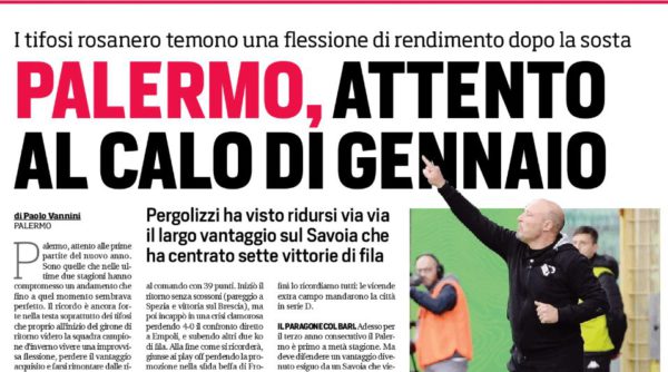 L'edizione odierna del "Corriere dello Sport" si sofferma sul momento del Palermo. La squadra rosanero dovrebbe fare attenzione alle partite...