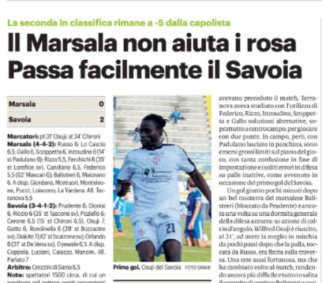 L'edizione odierna del "Giornale di Sicilia" si sofferma sulla vittoria del Savoia a Marsala. Ben messo in campo da Carmine Parlato,...
