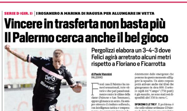 L'edizione odierna del "Corriere dello Sport" si sofferma sulla sfida tra Marina di Ragusa e Palermo. Alla squadra rosa manca...
