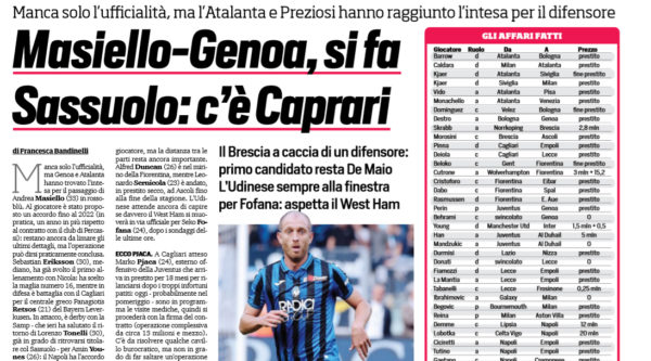 L'edizione odierna del "Corriere dello Sport" riporta le trattative del giorno in Serie A: "Manca solo l’ufficialità, ma Genoa e...