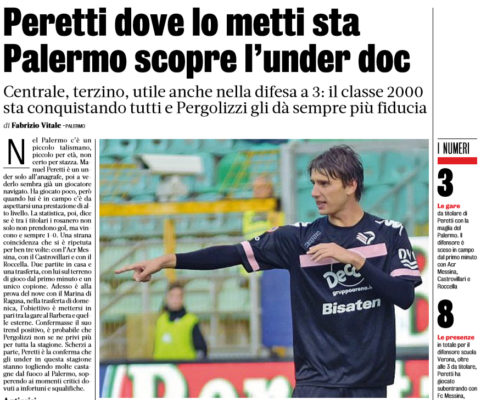 L'edizione odierna della "Gazzetta dello Sport" si sofferma sulle prestazioni di Manuel Peretti, difensore del Palermo. Under solo all'anagrafe, ma...