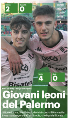 L'edizione odierna del "Giornale di Sicilia" si sofferma sul Palermo vittorioso contro il Biancavilla. I baby Silipo e Lucca trascinano...