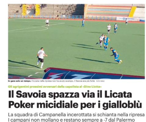 L'edizione odierna del "Giornale di Sicilia" si sofferma sulla vittoria del Savoia contro il Licata. Finisce con un rotondo 4-0 per...