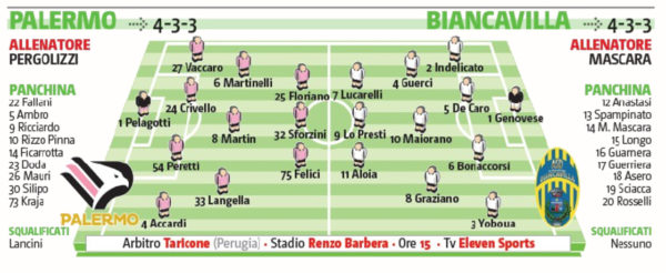 L'edizione odierna del "Giornale di Sicilia" si sofferma sulle probabili formazioni di Palermo-Biancavilla. In foto, i ventidue che scenderanno in...
