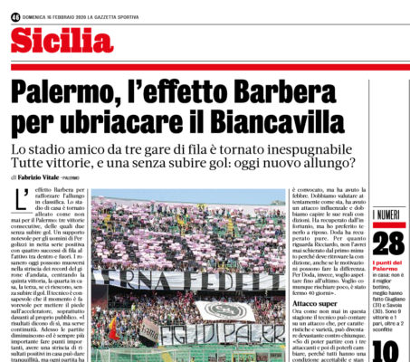 L'edizione odierna della "Gazzetta dello Sport" si sofferma sulla sfida tra Palermo e Biancavilla. I rosanero possono muoversi nella striscia...
