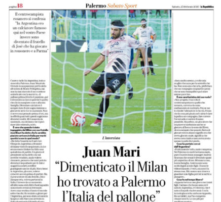 L'edizione odierna de "La Repubblica" riporta le dichiarazioni di Juan Mauri, centrocampista del Palermo: «Il pallone prima di tutto è passione,...