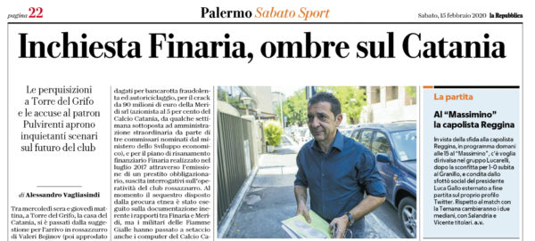 L'edizione odierna de "La Repubblica" si sofferma sulla drammatica situazione del Catania e del patron Pulvirenti. I nuovi guai giudiziari di...