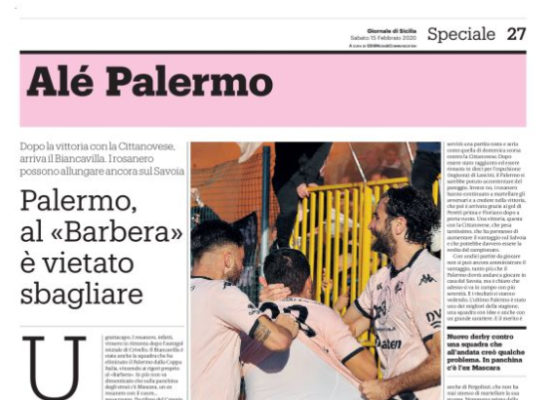 L'edizione odierna del "Giornale di Sicilia" si sofferma sulla sfida tra Palermo e Biancavilla. In casa la squadra di Pergolizzi...