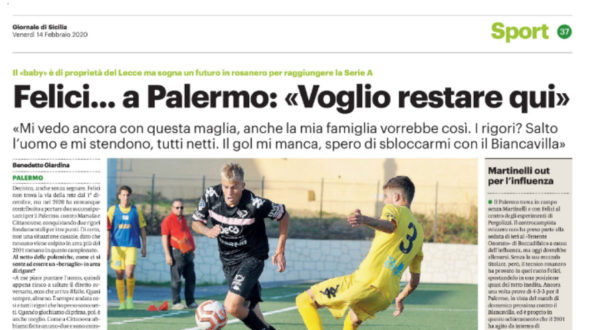 L'edizione odierna del "Giornale di Sicilia" riporta le dichiarazioni di Mattia Felici, attaccante del Palermo: «Campionato? Speriamo di vincerlo, intanto, poi...