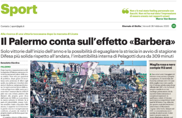 L'edizione odierna del "Giornale di Sicilia" si sofferma sull'effetto "Barbera" per il Palermo. Nel girone di ritorno, i rosa hanno...