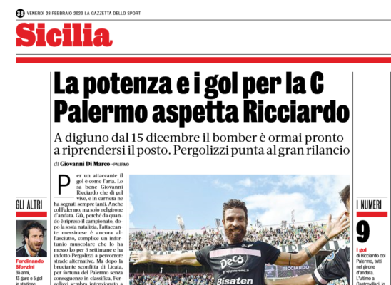 L'edizione odierna della "Gazzetta dello Sport" si sofferma sul momento di Giovanni Ricciardo, attaccante del Palermo. Dal girone di ritorno,...