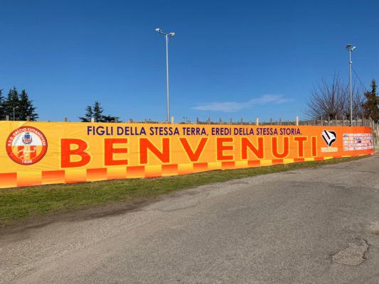 La Cittanovese ha esposto uno striscione per dare il benvenuto al Palermo, con scritto: "Figli della stessa terra, eredi della...
