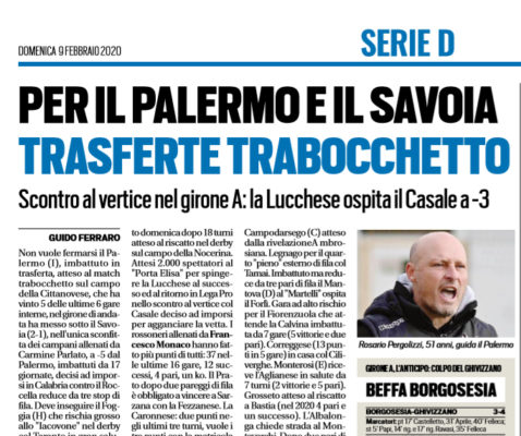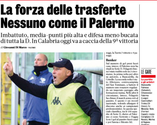 L'edizione odierna della "Gazzetta dello Sport" parla della forza del Palermo in trasferta. Oggi pomeriggio i rosanero a Cittanova contro...