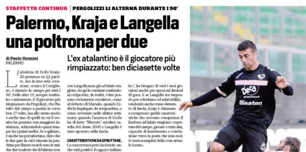 L'edizione odierna del "Corriere dello Sport" parla dei due giovani centrocampista del Palermo Kraja e Langella. L'ex Atalanta è stato...