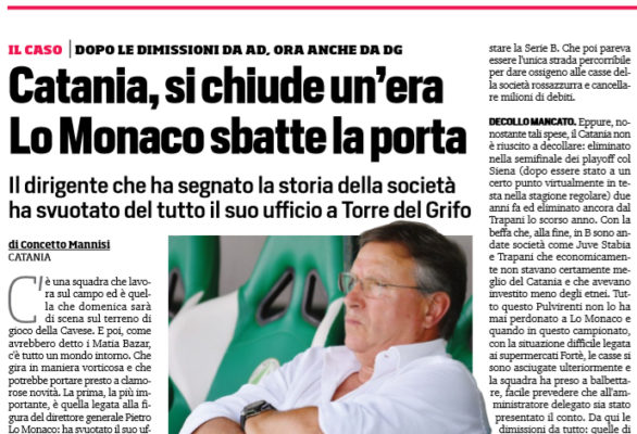 L'edizione odierna del "Corriere dello Sport" parla della situazione legata al Catania. C'è una squadra che lavora sul campo ed...