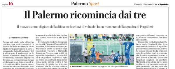 L'edizione odierna del "Giornale di Sicilia" parla dei rientri del Palermo in vista della sfida contro la Cittanovese. Ancora fuori...