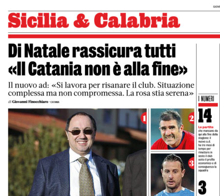 L'edizione odierna della "Gazzetta dello Sport" parla delle sorti del Catania e riporta le parole del nuovo membro del CDA...