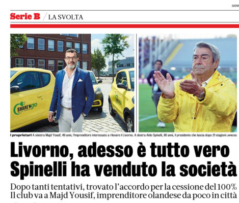 L'edizione odierna della "Gazzetta dello Sport" parla della cessione del Livorno. Dopo 21 anni si chiude la gestione di Aldo...